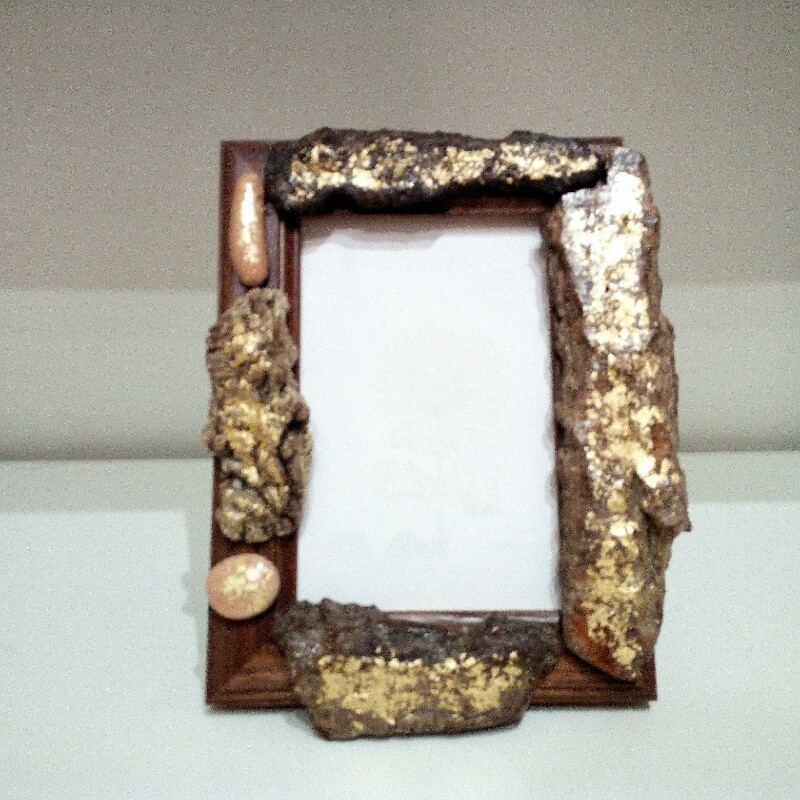 Cornice regalo Wood Gold Descrizione Cornice di legno sulla quale ho applicato cortecce e sassi decorati con foglia d’oro. Guarda anche:Cornice Portafoto<< torna alla lista